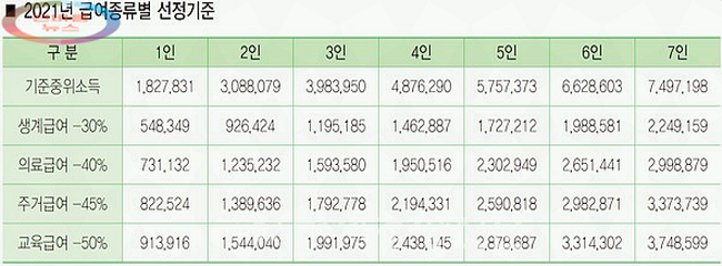 《2021년 및 2022년 급여별 선정기준》
