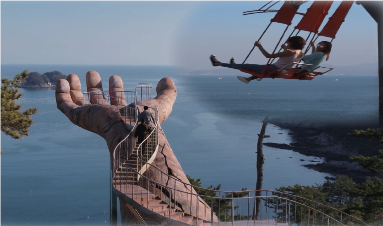 다낭 바나힐의 유명한 골든브릿지를 연상하게하는 여수예술랜드의 마이다스의 손은 인스타 핫플레이스로 입소문 타고 있는 곳으로 여수예술랜드에 가면 여수의 아름다운 바다를 조망할 수 있습니다.