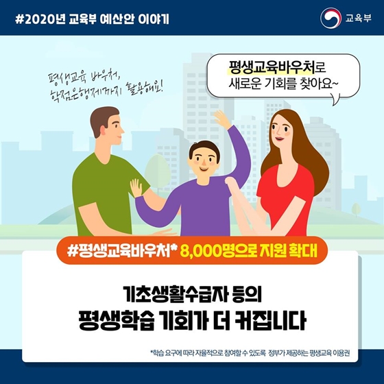 또 다른 정부지원 사업의 신청 소식은 본인이 원하는 수업 자율적으로 결정하고 수강할 수 있도록 정부에서 1인당 35만원의 평생교육이용권을 제공하는 사업 만 19세 이상 성인 중 기초생활수급자, 차상위계층, 기준중위소득 65%이하인 가구의 구성원이 신청자격입니다.1인가구 기준중위소득 120% 이하로 2022년 평생교육바우처 공고 사전 알림신청 서비스 신청하면 신청에 대한 안내를 입력한 휴대전화로 받을 수 있으니 관심있다면 미리 신청해 두는 것도 좋을 것 같습니다. 본인이 해당되고 지원받길 원하는 정부지원 사업 있다면 신청날짜 꼭 각각 기억해 두고 늦지 않게 신청하여 꼭 지원받기를 바랍니다.