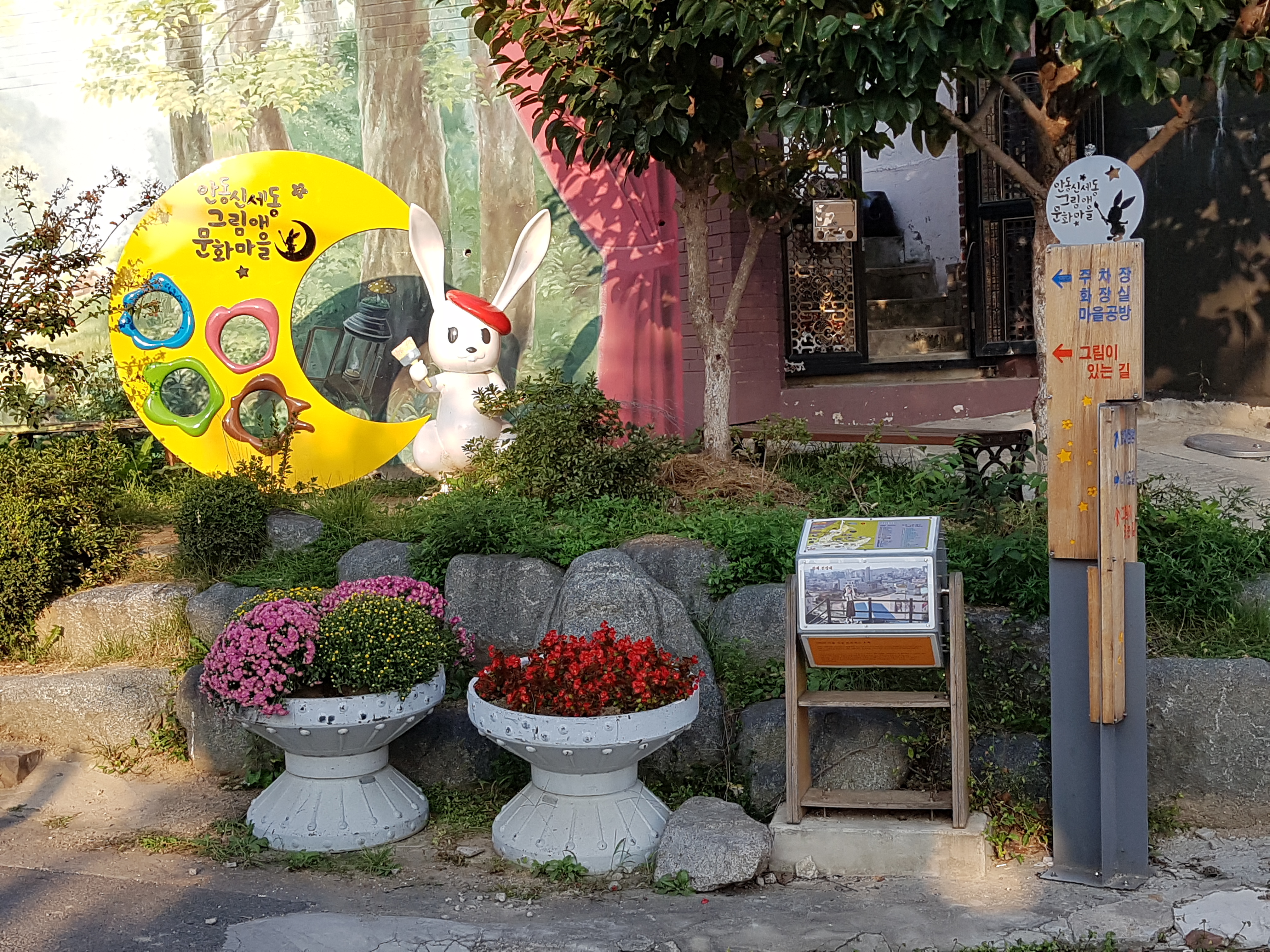 무엇보다 신세동 벽화마을은 안동역에서 10분 내로 걸어 갈 수 있는 거리이기 때문에 안동에 도착하자마자 바로 들릴 수 있는 여행지로 단순히 여행객을 응집 시키기 위한 무의미한 그림 나열이 아닌 동네 주민의 모습, 우리 가족의 모습, 애완묘, 애완견, 친숙한 애니메이션 캐릭터들까지 그려져 있어 틀에 박혀져 있지 않지만 유기성을 띄는 전시회를 보는 것 같습니다. 별도의 요금을 내지 않아도 훌륭한 작품들을 접할 수 있기 때문에 누구나 평등하게 누릴 수 있는 문화 예술 공간이 되기도 합니다.