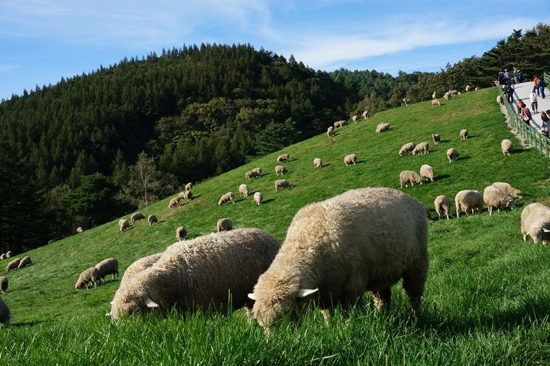 대관령 양떼목장은 해발 900m의 대관령 고지에 위치한 약20만제곱미터 규모의 우리나라 대표적 양떼목장으로 양들이 뛰놀며 풀 먹는 푸른 초원의 풍경 바라보면 왜 대관령 양떼목장을 한국의 알프스라고 부르는지 고개 끄덕여질 것입니다.매표소 지나면 왼쪽과 오른쪽 갈림길 나오는데 오른쪽으로 가면 곧장 먹이주기 체험장 나오고 왼쪽 산책로 1을 따라 언덕길 오르면 나무로 만든 움막 만날 수 있습니다.여행객 중에는 양 먹이체험장으로 가서 일부 구간만 산책 하고 돌아오는 사람들도 있습니다.나무로 지은 움막과 구불구불한 초원의 곡선 만들어내는 풍경 아름다우니 산책로1의 움막 꼭 만나 보기 바랍니다.추가요금 없이 양 먹이인 건초 받을 수 있어 먹이주기 체험 할 수 있는 대관령 양떼목장은 대관령 휴게소에 주차한 후 대관령 휴게소 뒷길 따라 조금만 오르면 만날 수 있습니다.