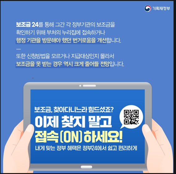 4월부터는 정부가 제공하는 수혜 서비스 한 번에 확인하고 신청할 수 있는 보조금 24서비스가 시행되는데, 행정 서비스 포털 정부 24홈페이지에서 확인할 수 있는 보조금 24서비스는 우선 4월 정부가 제공하는 보조금을 중심으로 시작되어 12월까지는 각 지방 자치단체, 그리고 2022년에는 공공기관이 제공하는 보조금까지 한눈에 바로 신청 파악이 가능해요.보조금 24서비스는 한국판 뉴딜사업의 하나로 기획재정부는 매월 디지털뉴딜 그린뉴딜 고용 사회안전망 강화등 한국판뉴딜로 진행되는 각 사업에 공모 행사계획 등 주요 일정 정리해서 제공하기 시작, 4월 일정에 보조금 24서비스 개시가 담겨 있어, 오는 연말까지 보조금24에 거주하는 지자체 맞춤서비스까지 확인 가능하도록 대폭 확대 될 예정입니다.