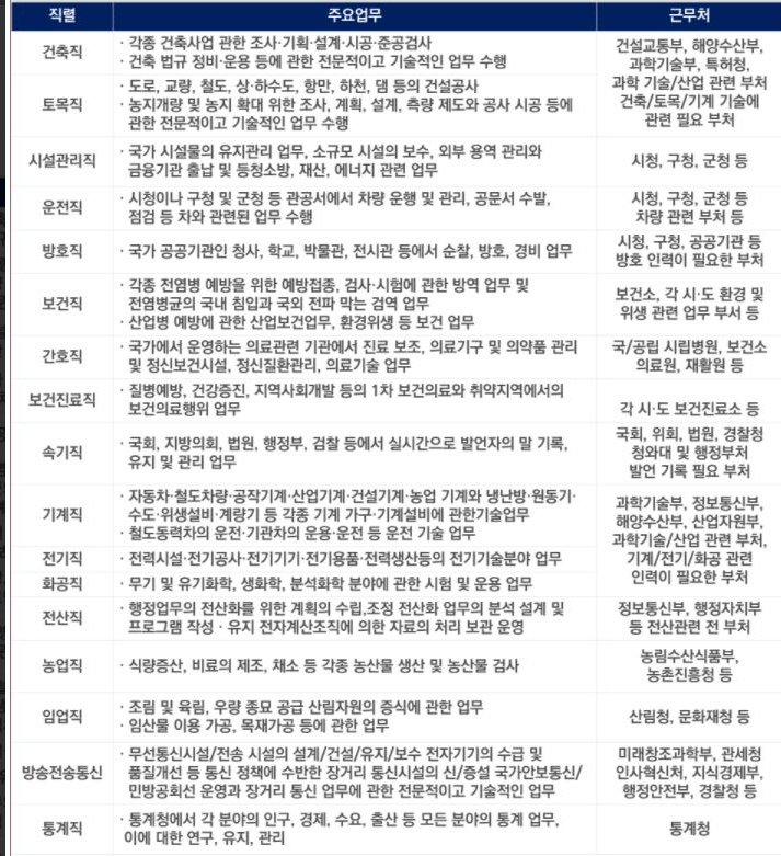 행정직/기술직/군무원으로 나누어진 각 근무처 확인해 보겠습니다.