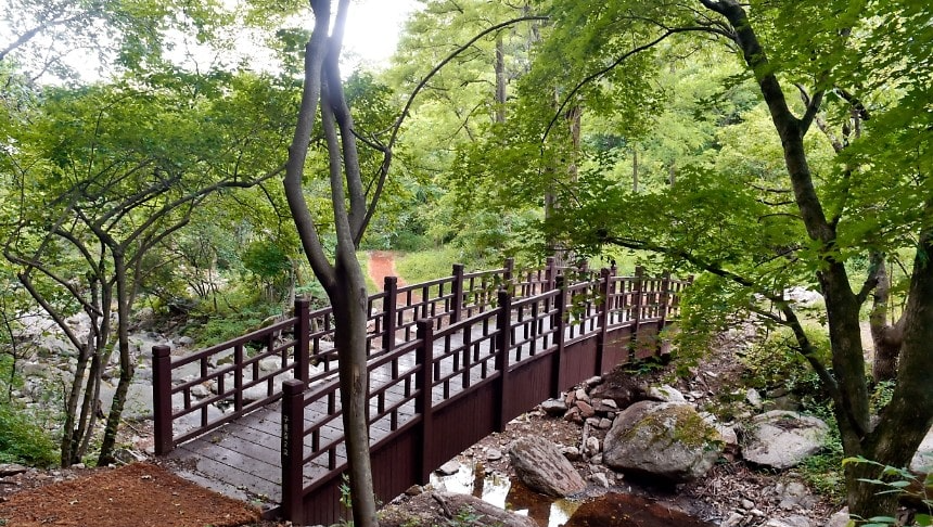 백제가요 정읍사 오솔길 2코스(내장호 수변데크) 현존하는 유일한 백제가요 '정읍사'를 테마로 하는 길로,내장호를 둘러싼 황톳길과 조각공원,내장 생태공원 연결하는 수변 데크길을 즐길 수 있습니다.내장산 문화관광에서 시작해 내장호를 한 바퀴 돌아 원점회귀하면 전체 약 4.5km, 1시간 30분 정도 소요된다고 합니다.
