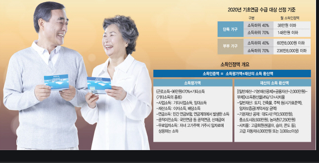 2020년 1월 9일 '연금 3법' 국회 통과하면서 2020년 1월부터 월 최대 30만 원 기초연금 지급 대상이 소득 하위 20%에서 40% 이하까지 확대되었으며, 이에 따른 소득하위 20∼40%에 속했던 162만 5000명 월 연금액이 기본액 25만 원에서 30만 원으로 5만 원 인상, 월 30만 원 수령자는 총 325만 명으로 늘어나고, 물가인상률 반영 시기 1월로 당겨져 나머지 수급자도 2019년 25만 3750원보다 1010원 인상된 25만 4760원을 받는다고 합니다.